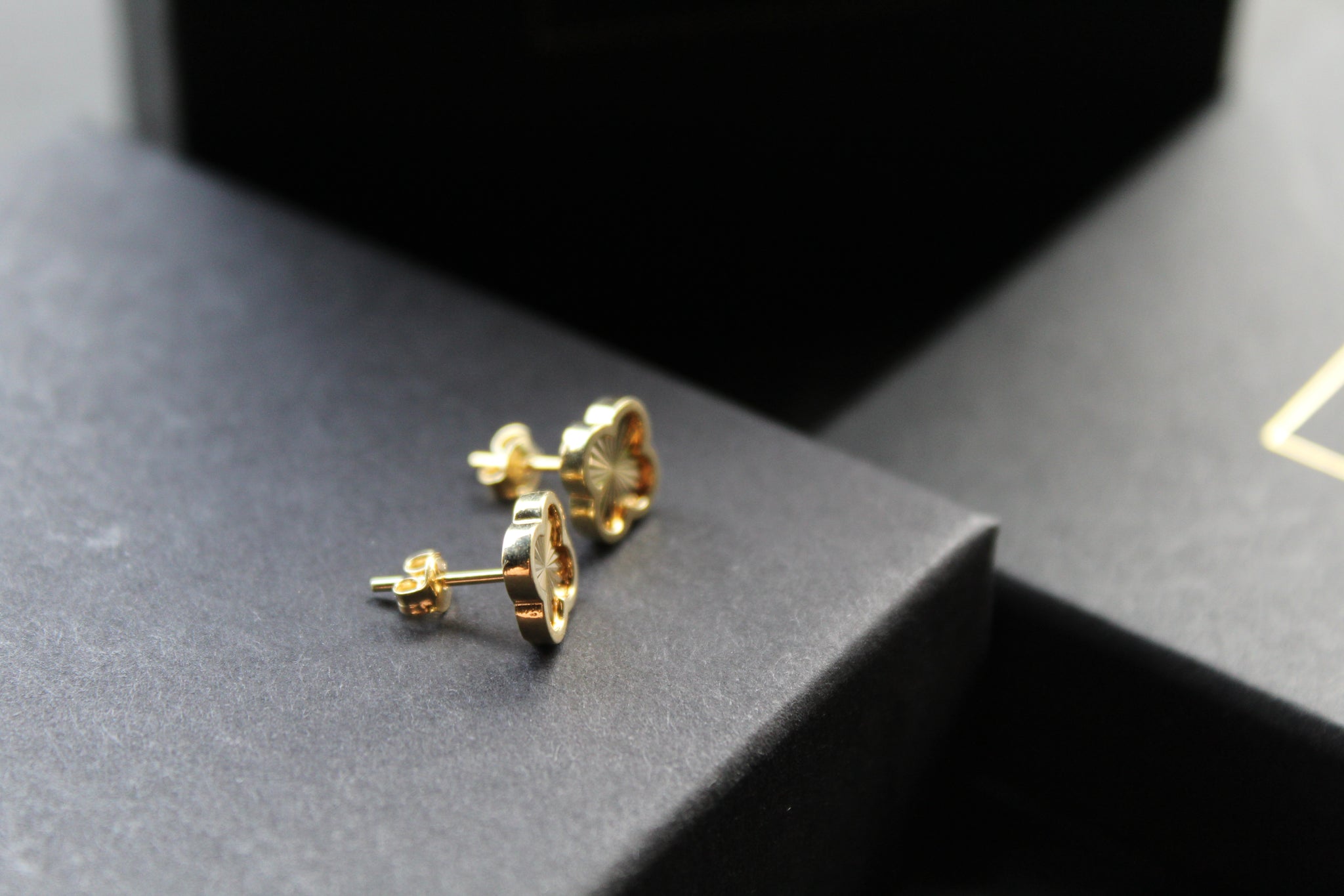 Elevate your jewellery collection with these stunning 9ct gold rainbow clover stud earrings designed to add a touch of elegance and sparkle to any look.