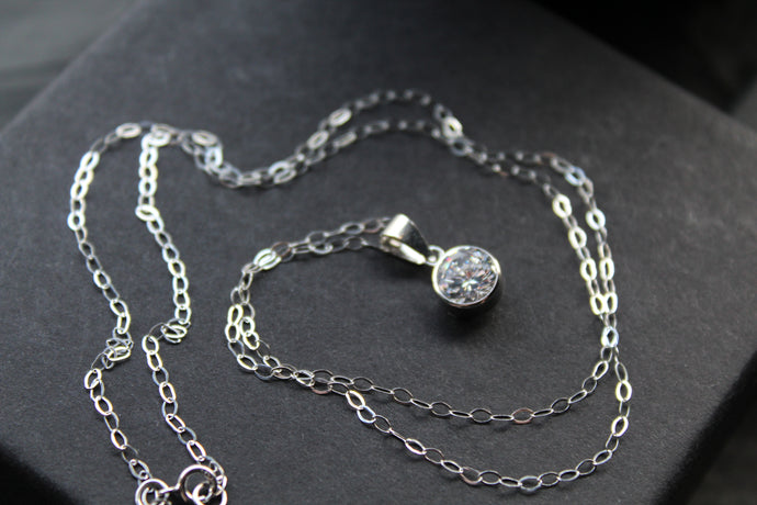 9ct White Gold Cubic Zirconia Pendant and Chain