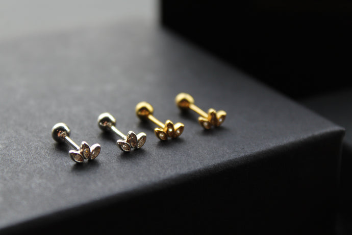 Trio of Tiny CZ Petals Labret Threaded Stud