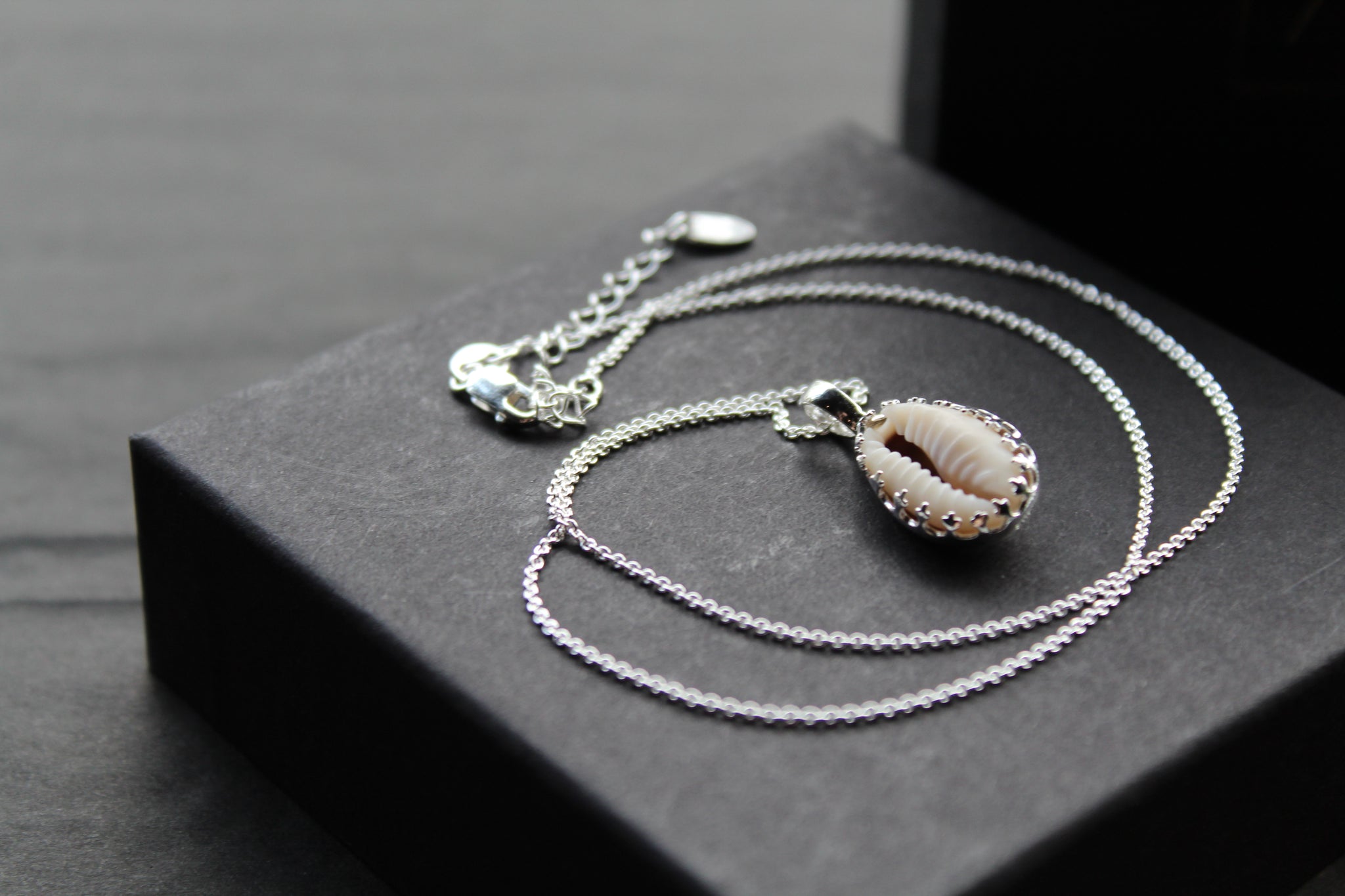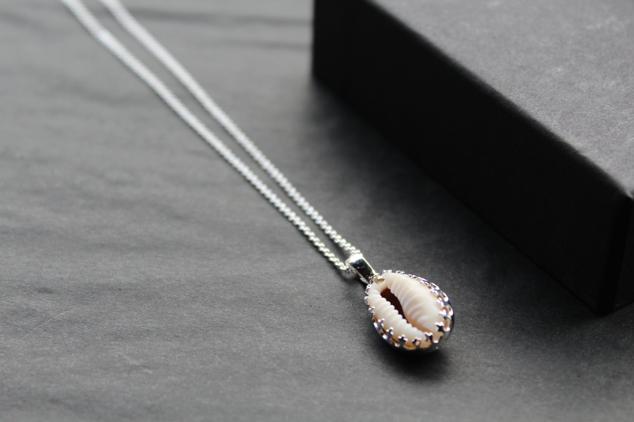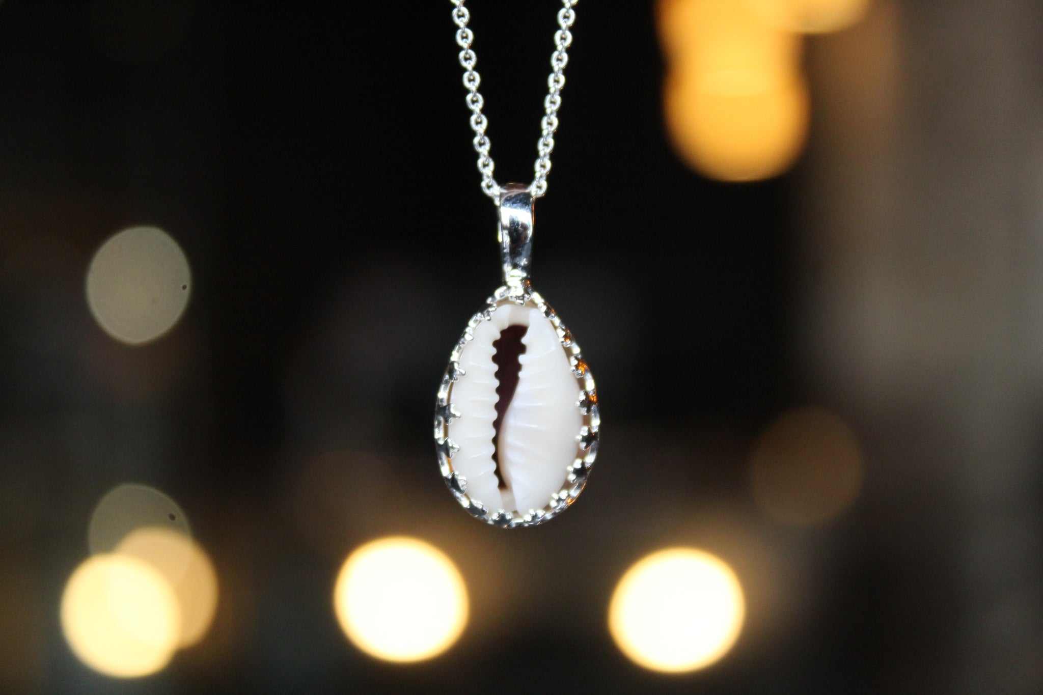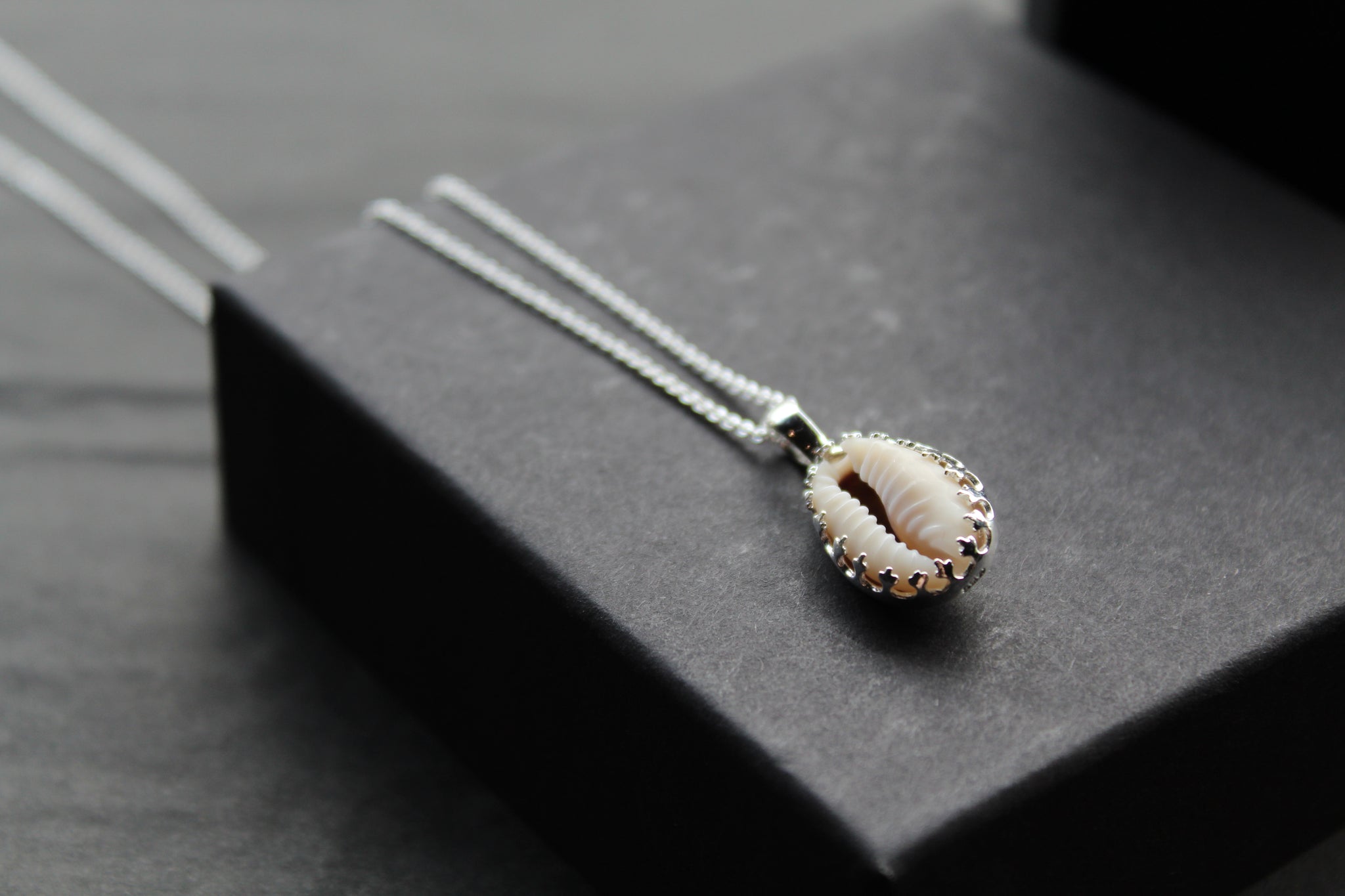 Elegantly handcrafted, this pendant showcases a real cowrie shell encased in 925 Sterling Silver, finished with intricate detailing.