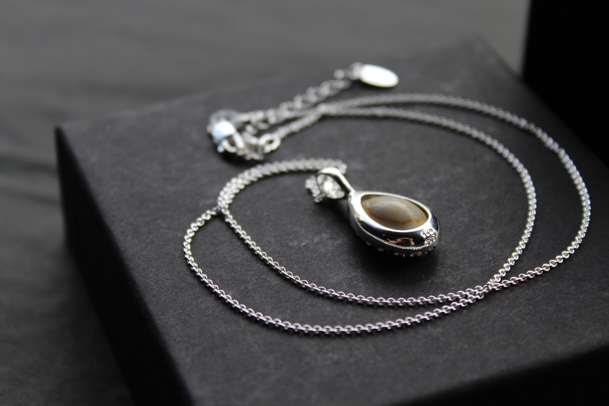 Comes on an adjustable 16" - 18" Silver Rolo Chain