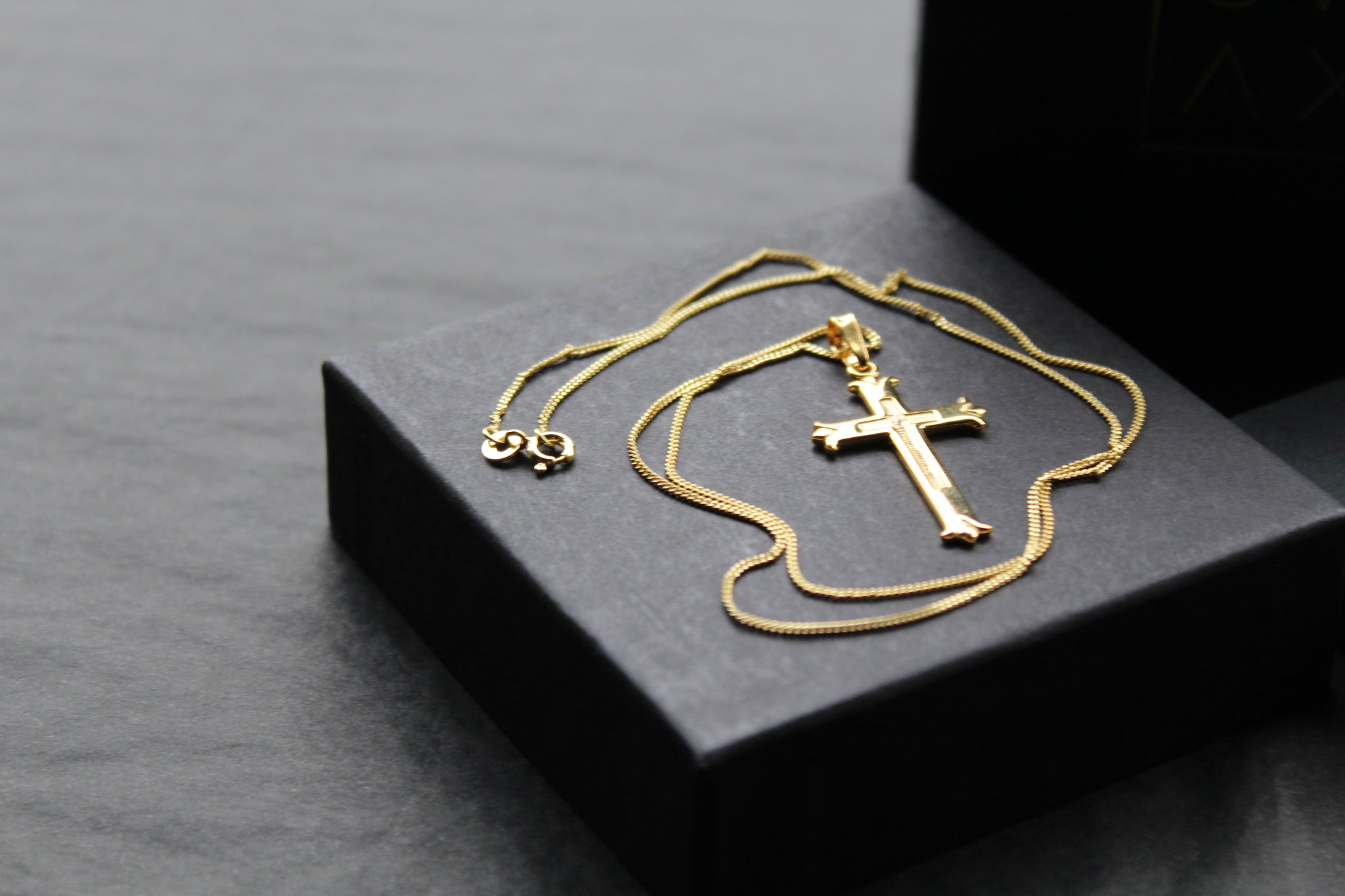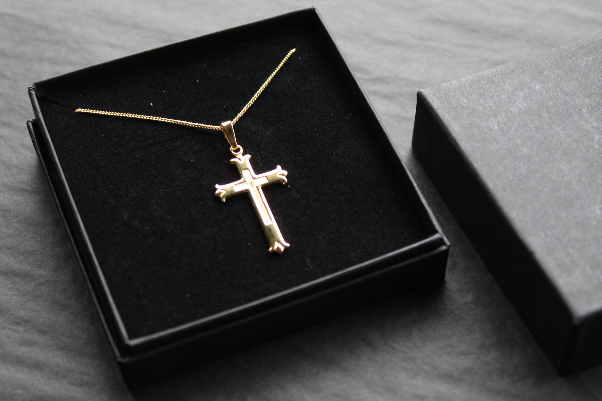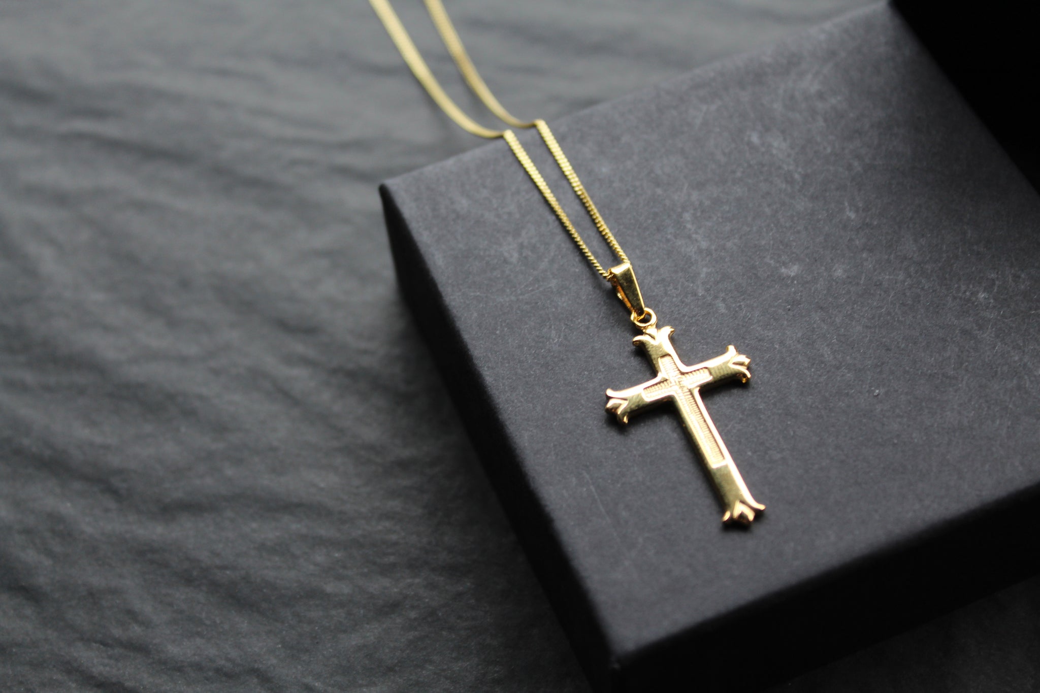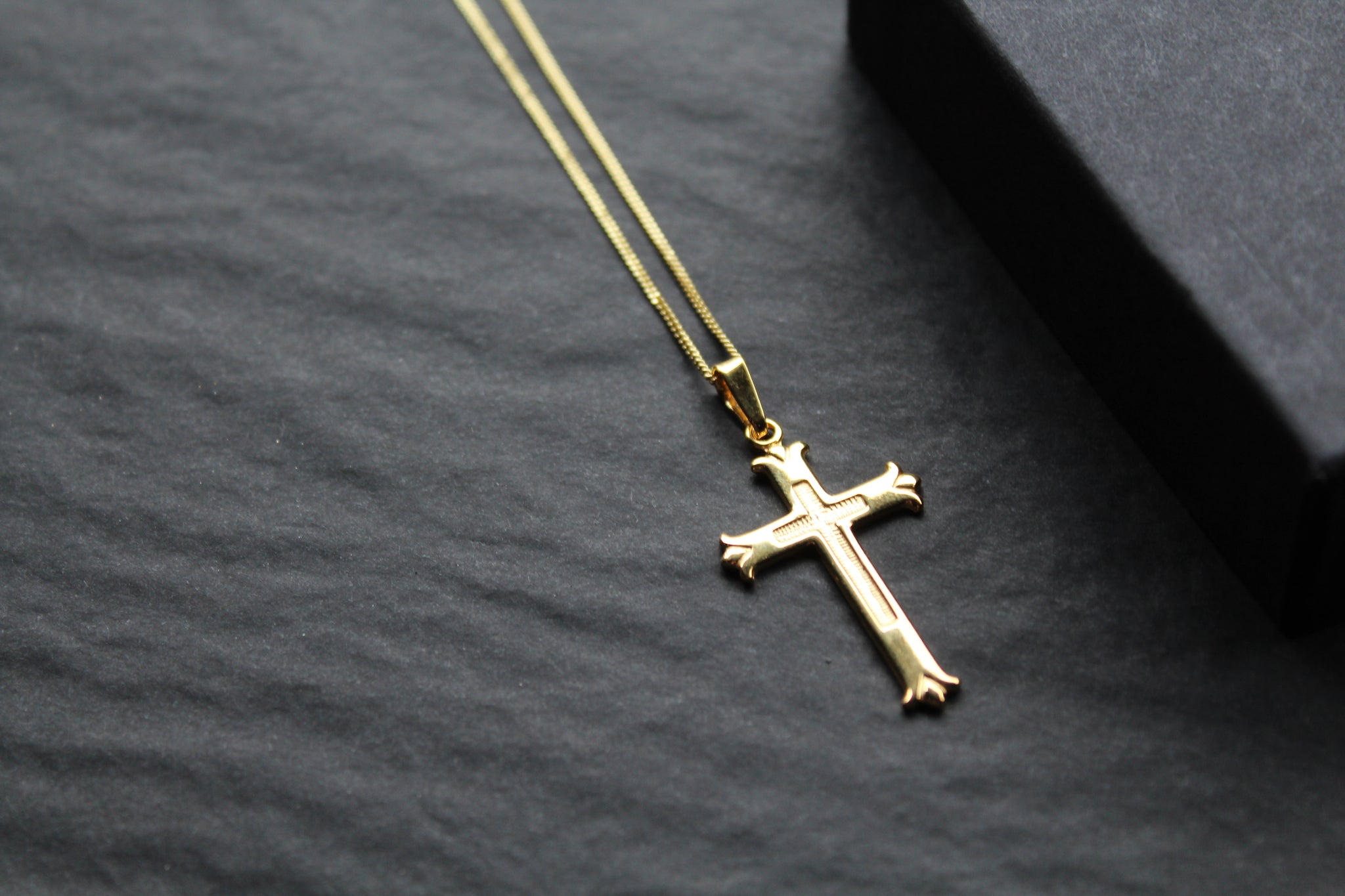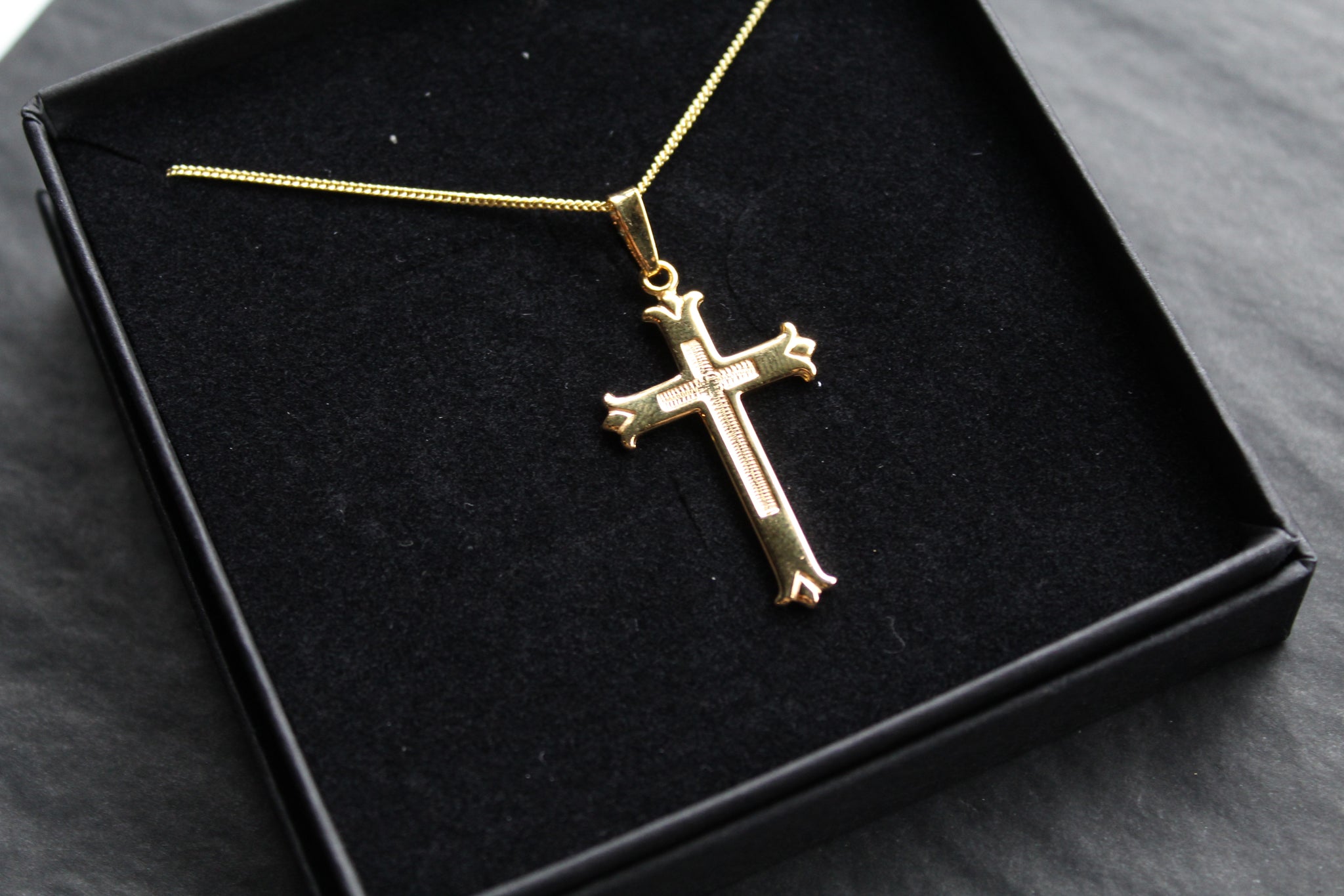 Yellow gold plated sterling silver cross necklace. Come with 20"chain.