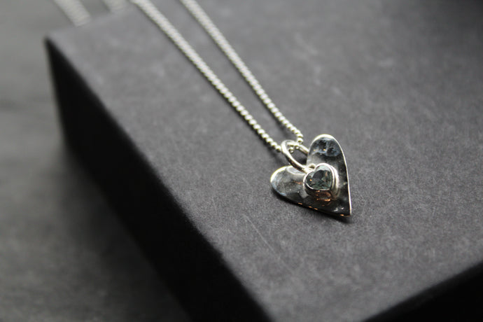 Hammered Blue Topaz Heart Pendant and Chain