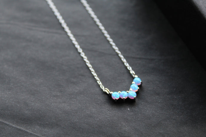 Cubic Zirconia & Blue Opalique Triple Band Ring