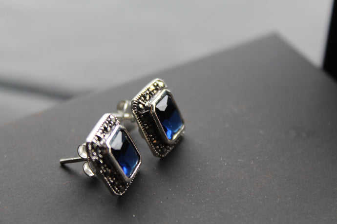 Two Tone Sapphire Blue Cubic Zirconia Studs