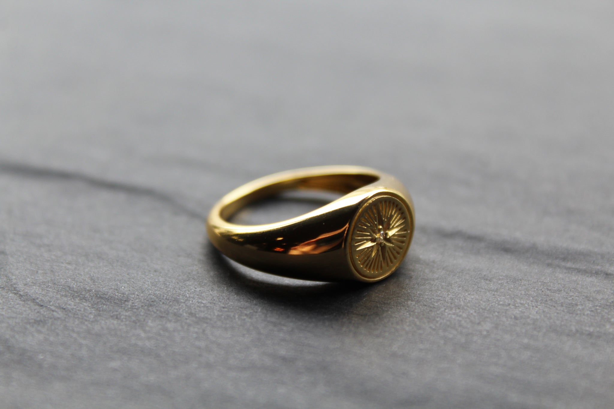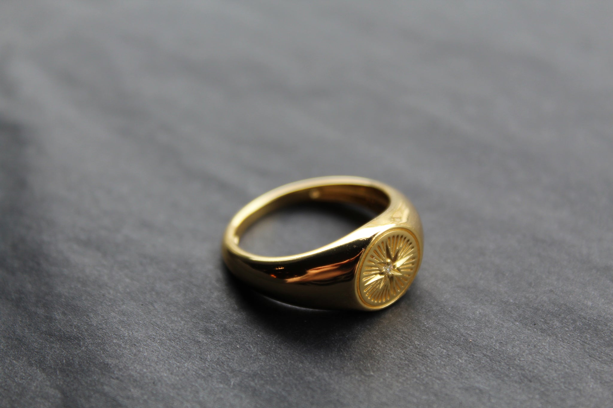 The classic signet ring has been re-imagined with this modern diamond cut design.